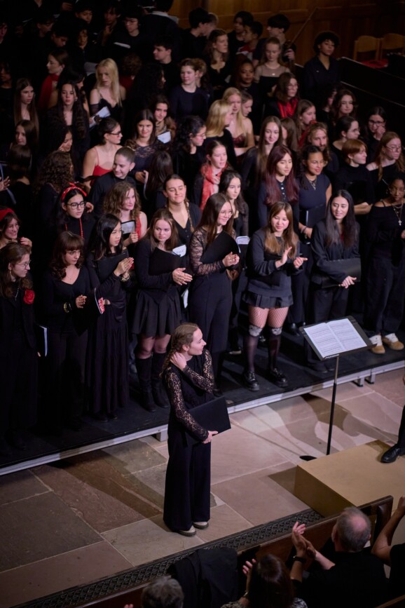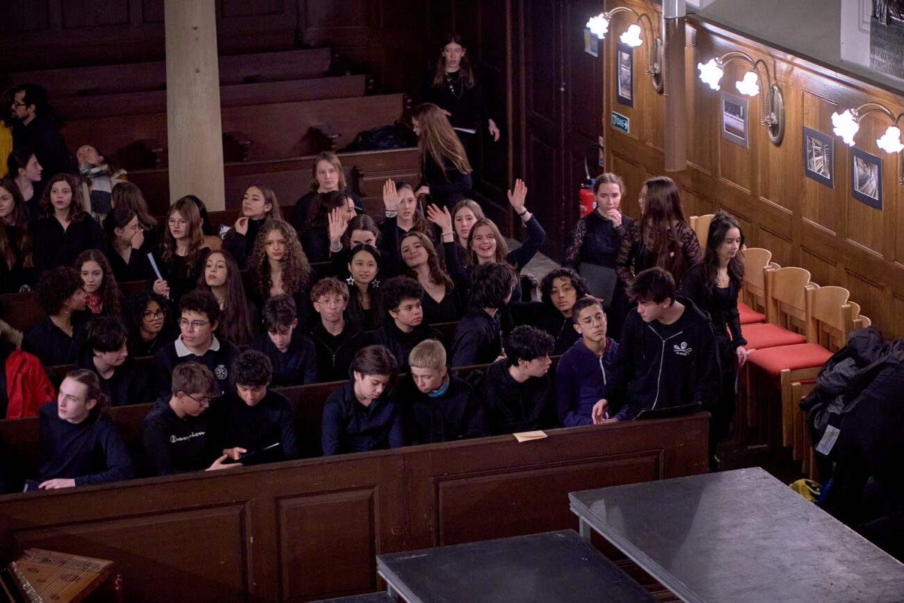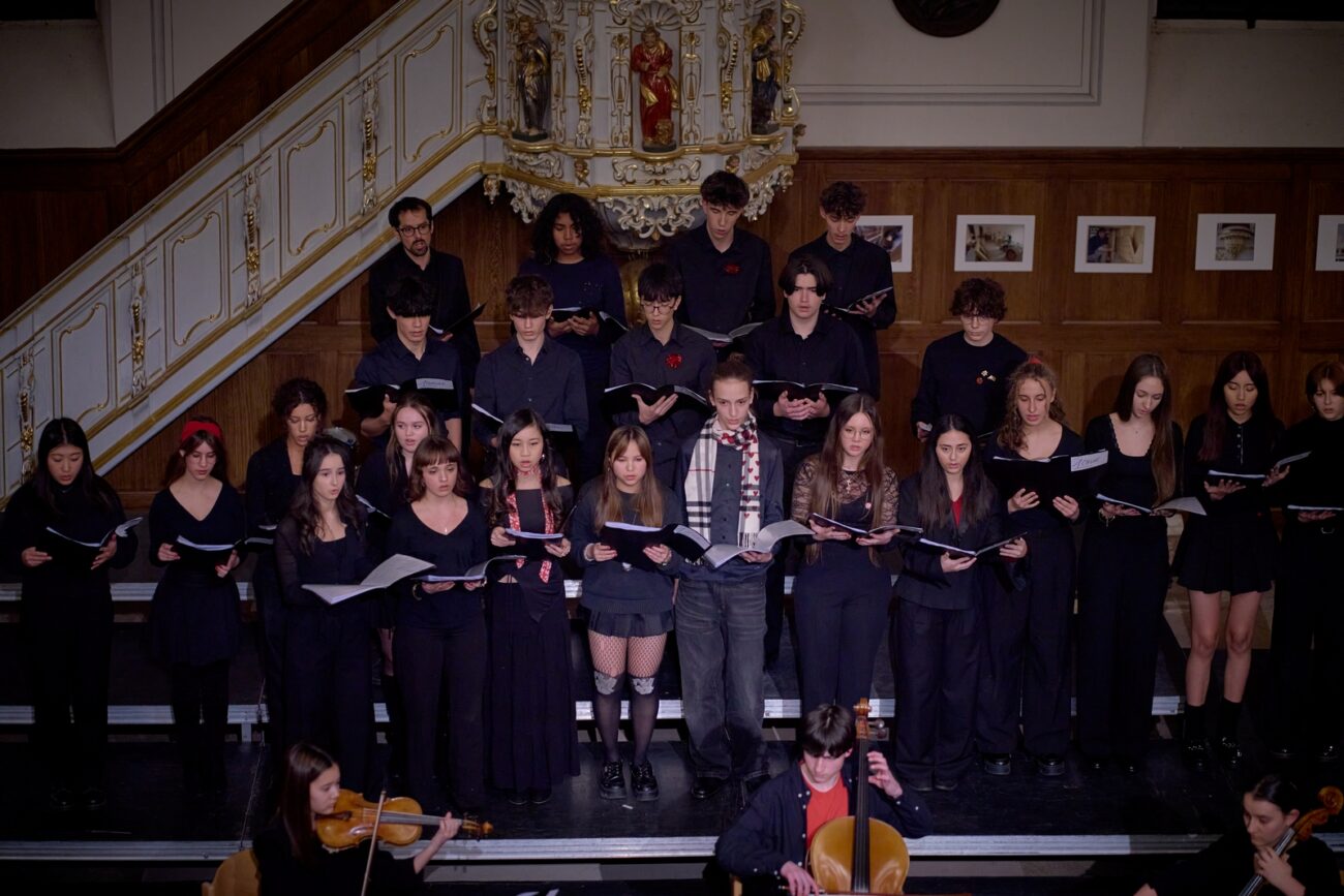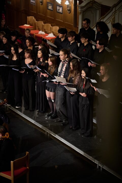 Parents, amis et adultes du lycée ont constitué un public nombreux ce jeudi 27 novembre pour applaudir chaleureusement les quelques 130 choristes et instrumentistes, rassemblés autour d’un programme varié alliant danse et musique.