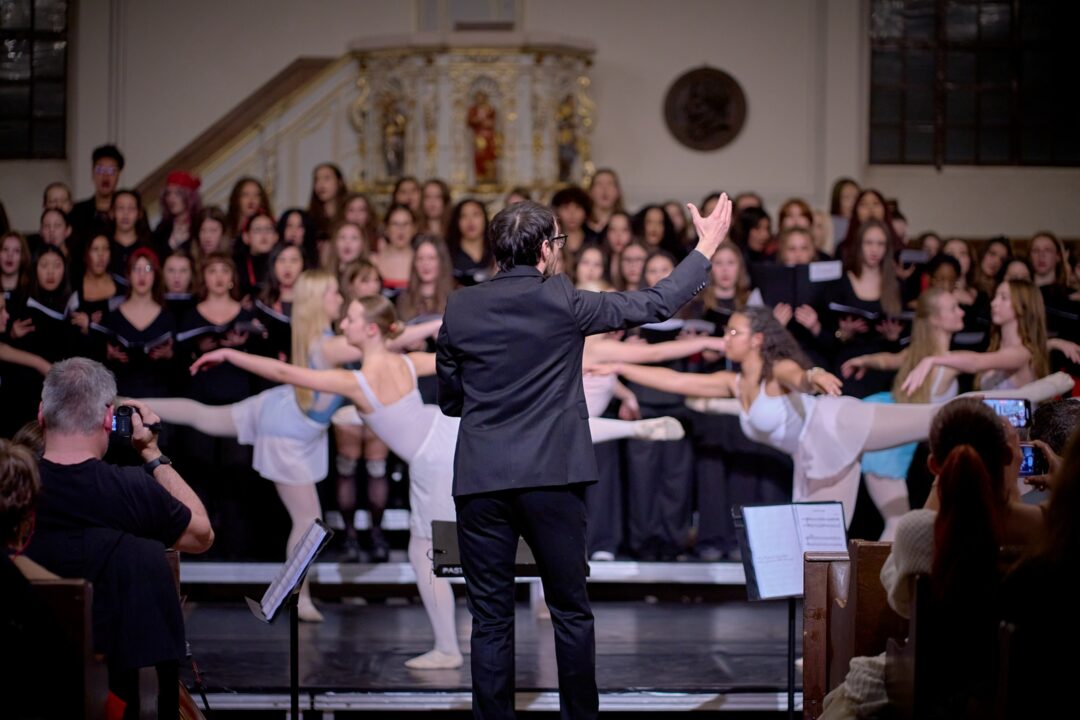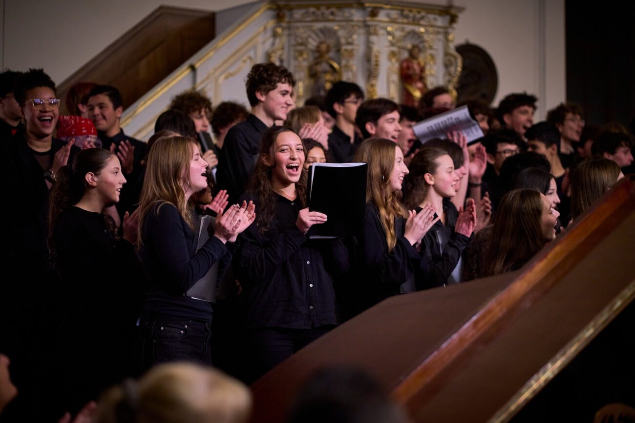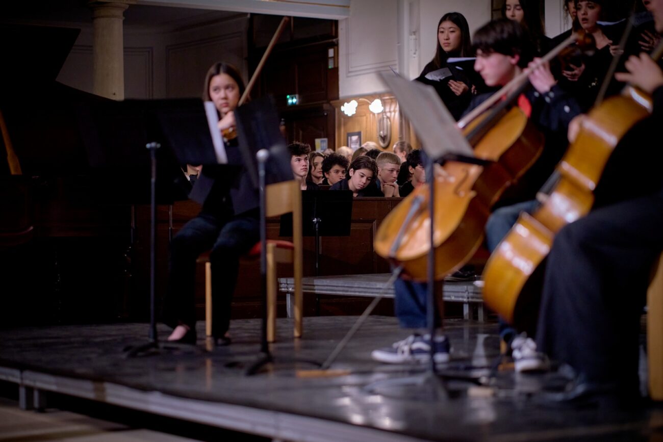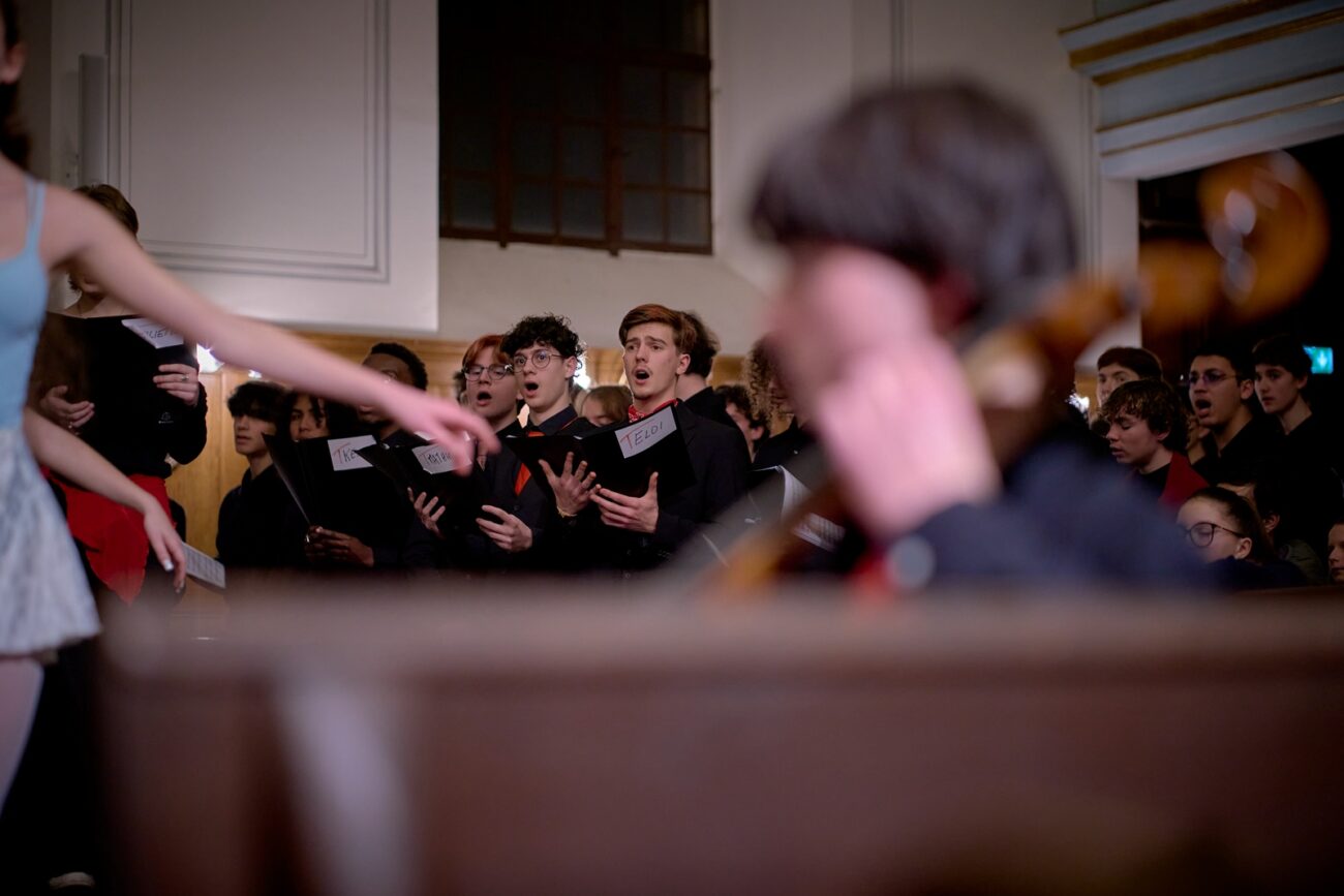 Parents, amis et adultes du lycée ont constitué un public nombreux ce jeudi 27 novembre pour applaudir chaleureusement les quelques 130 choristes et instrumentistes, rassemblés autour d’un programme varié alliant danse et musique.