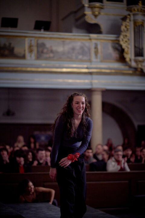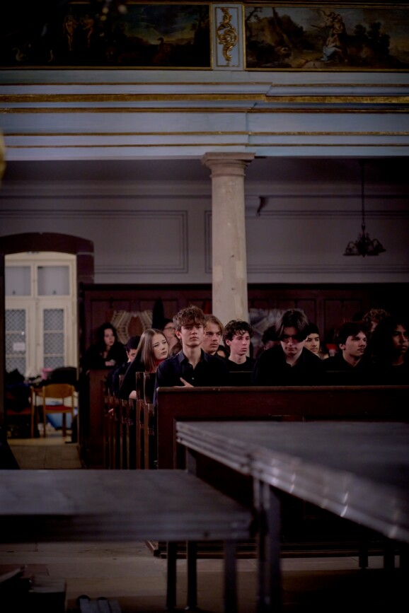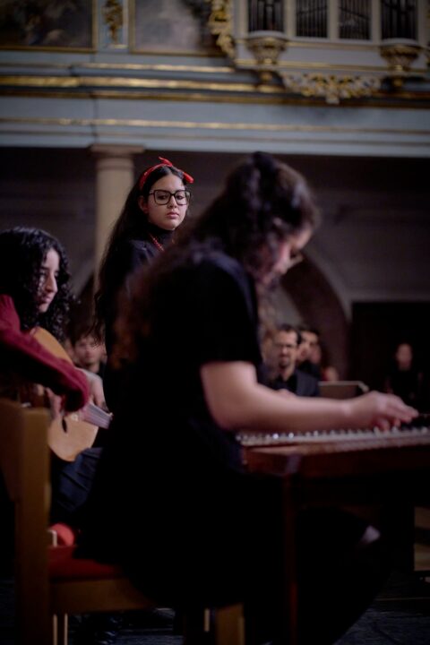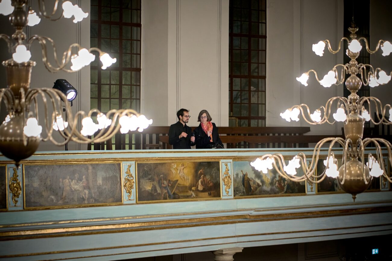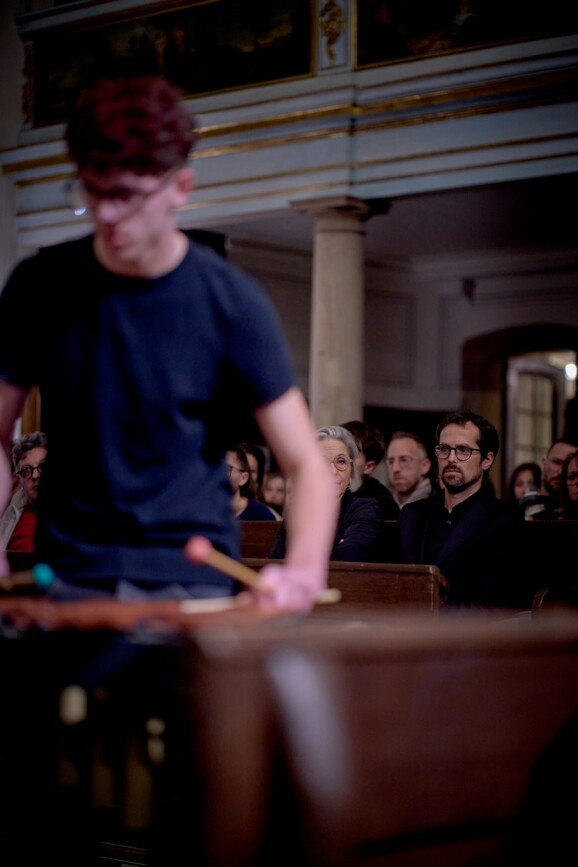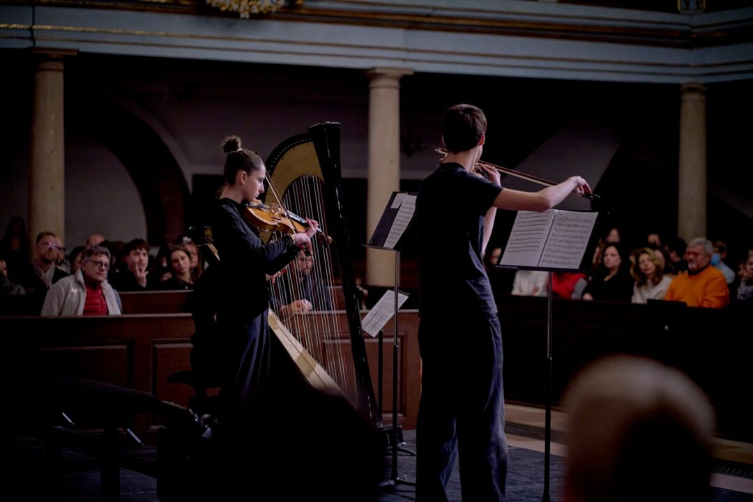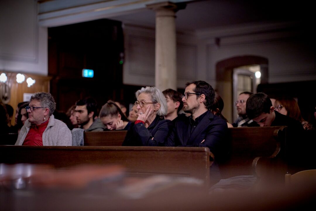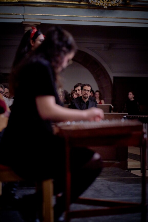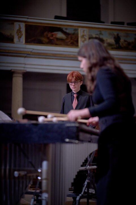 La configuration de l’église Sainte Aurélie permettait de belles possibilités de spatialisation, des occasions de jouer avec l’acoustique, que n’ont pas manqué d’exploiter les deux enseignants, Marie-Annick Guillemin et François Lecourt, pour surprendre les spectateurs.