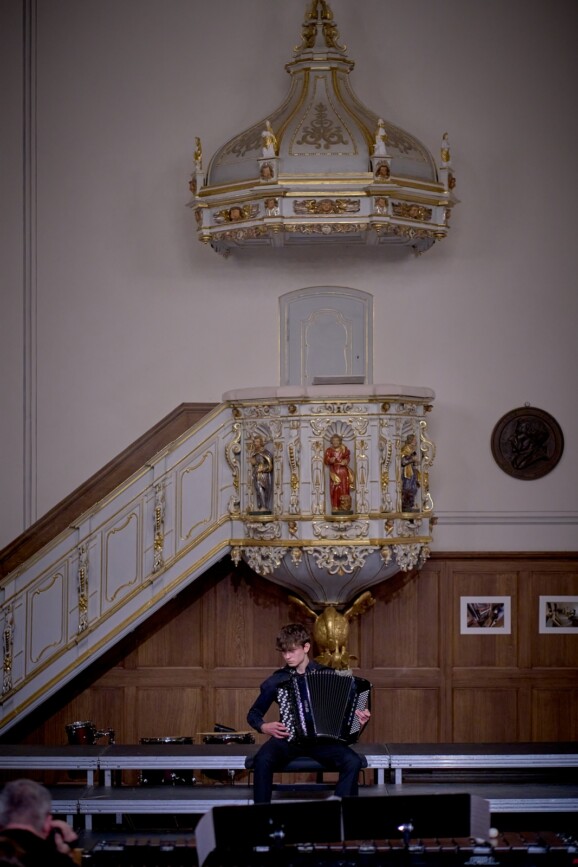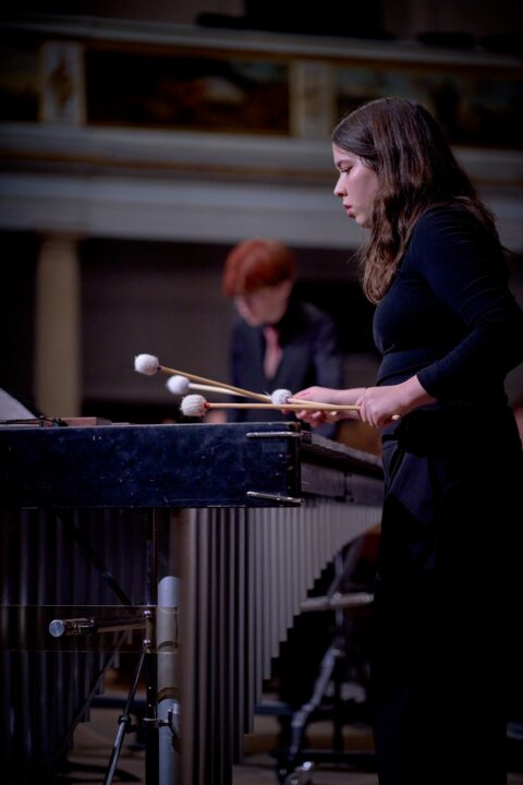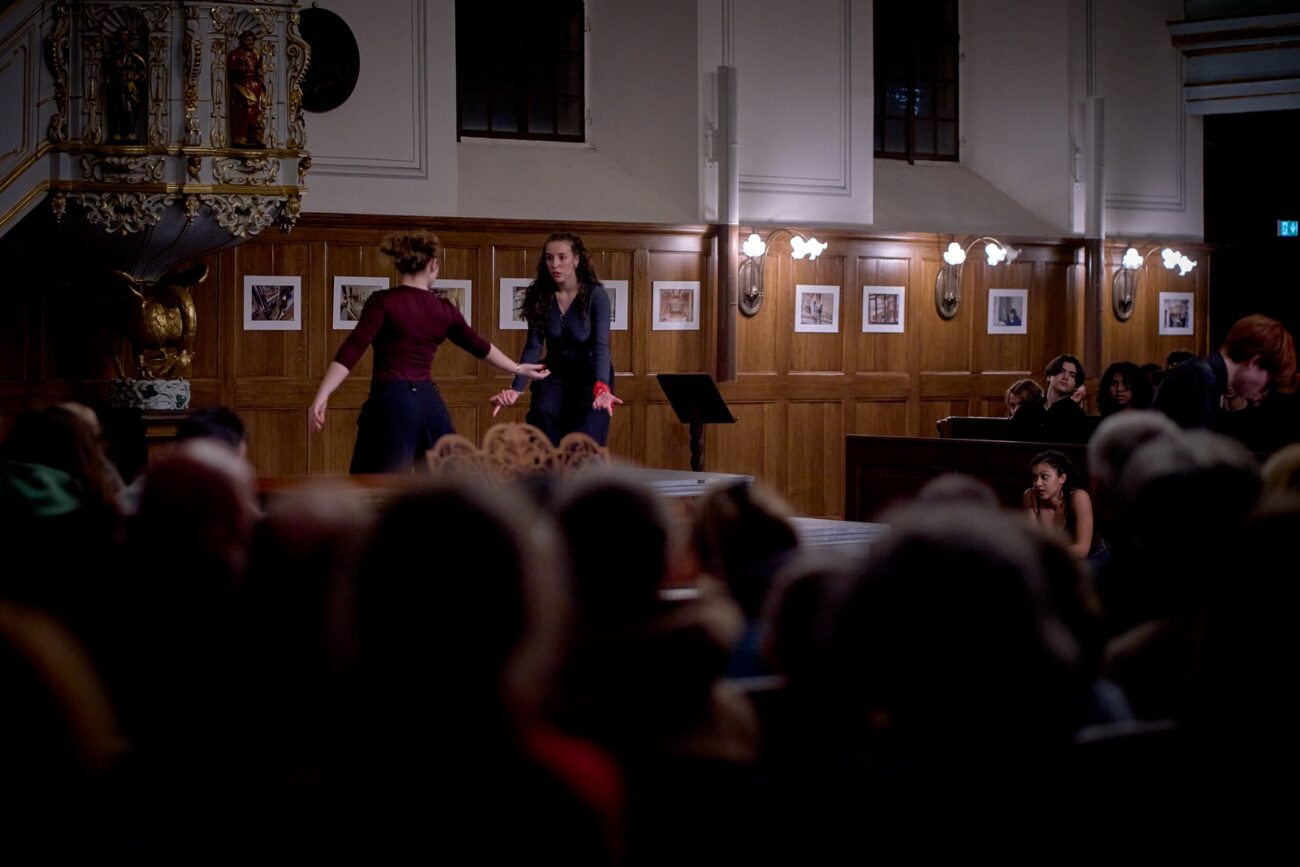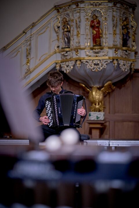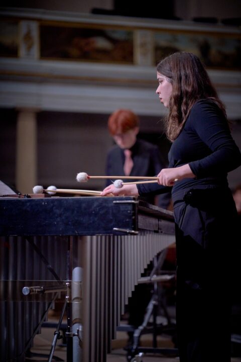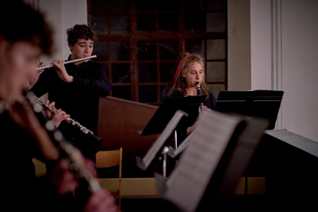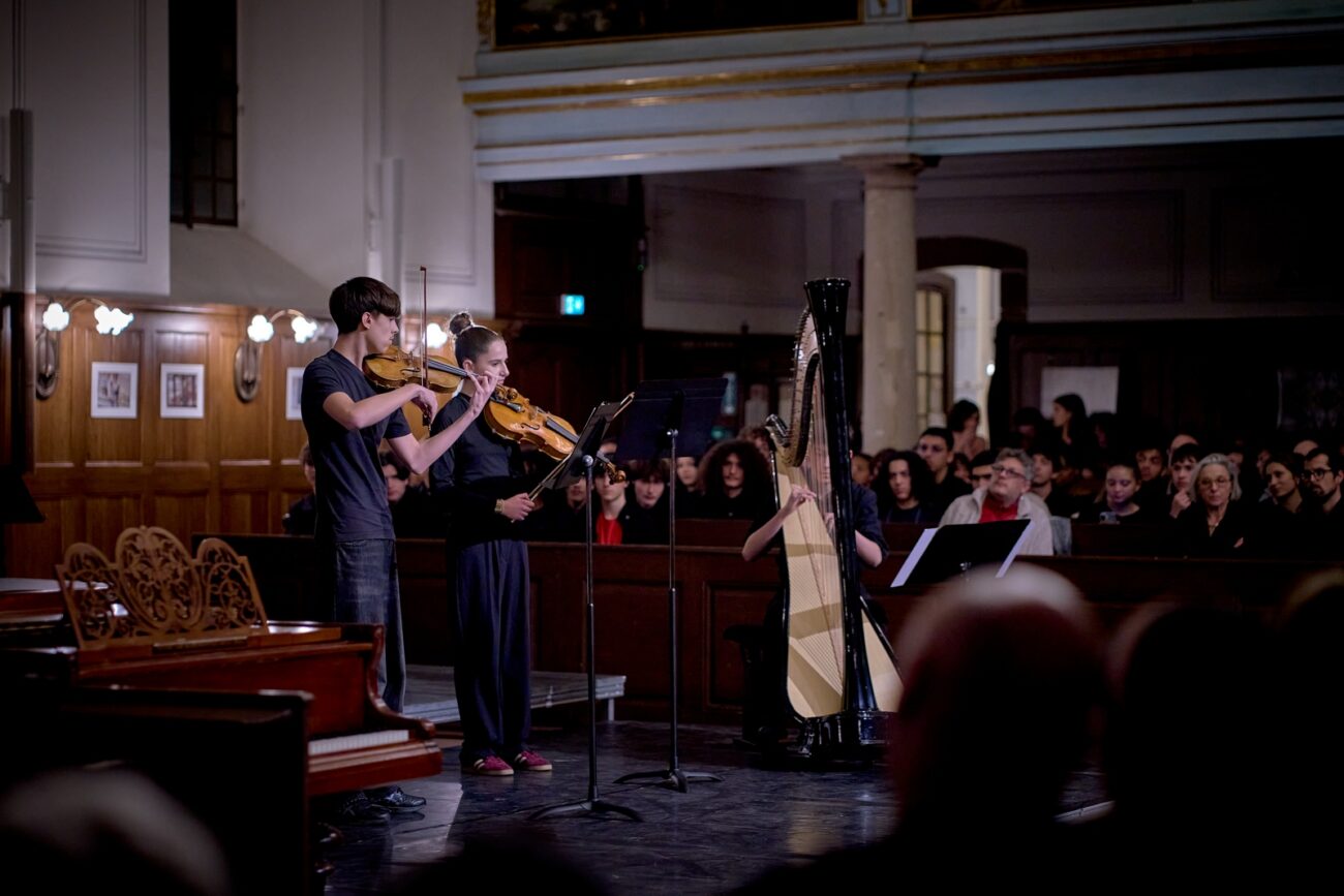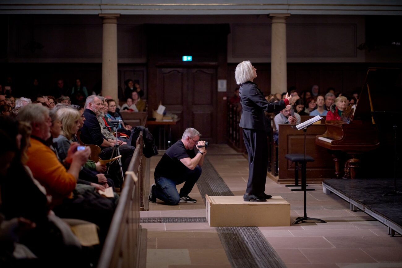 La configuration de l’église Sainte Aurélie permettait de belles possibilités de spatialisation, des occasions de jouer avec l’acoustique, que n’ont pas manqué d’exploiter les deux enseignants, Marie-Annick Guillemin et François Lecourt, pour surprendre les spectateurs.