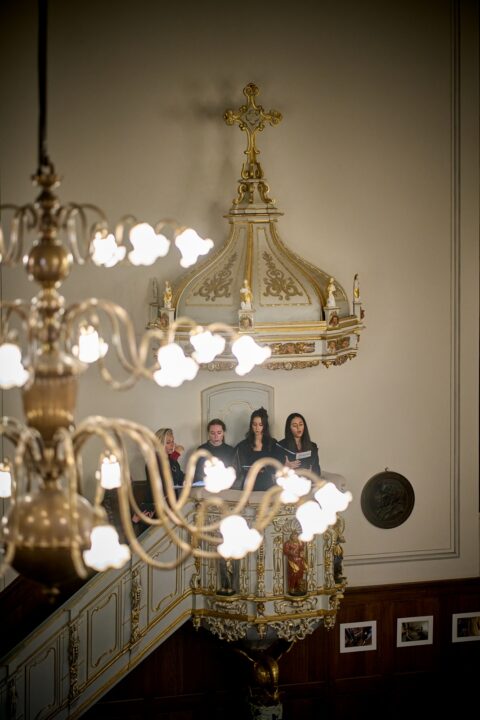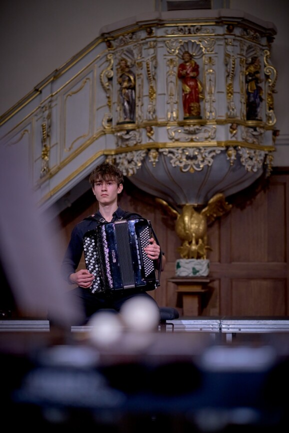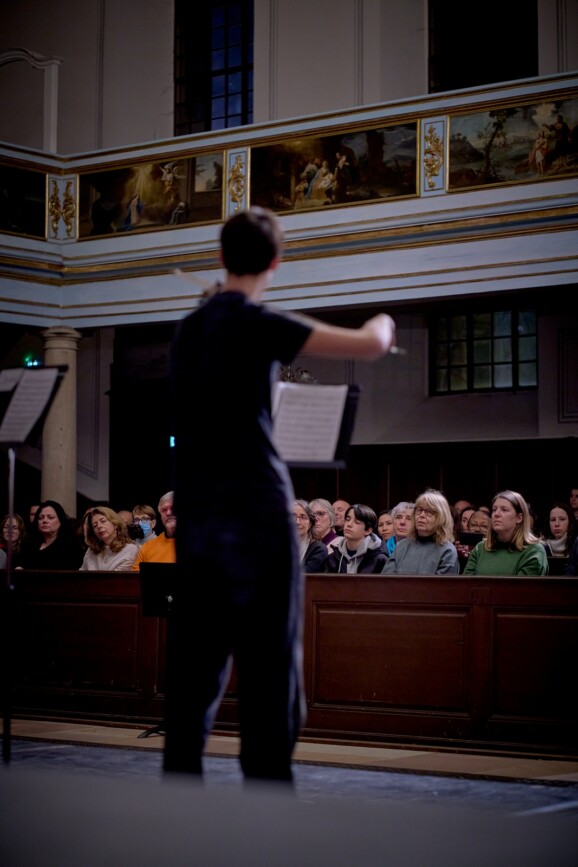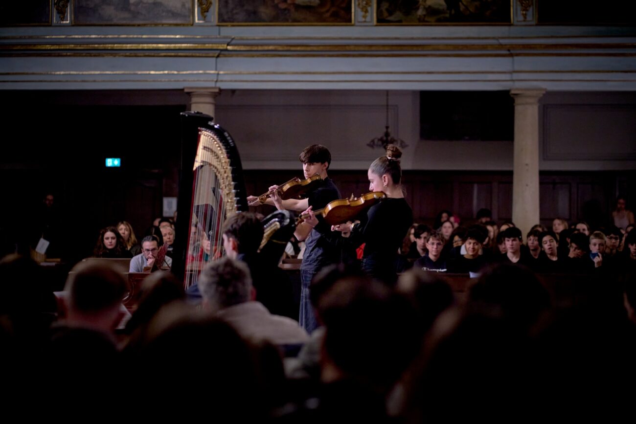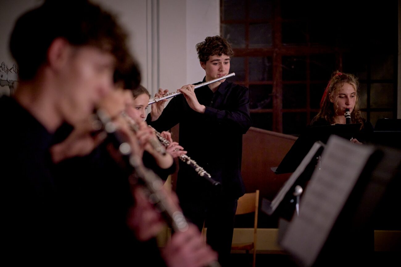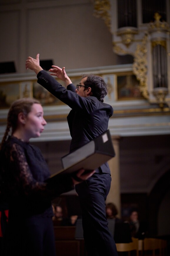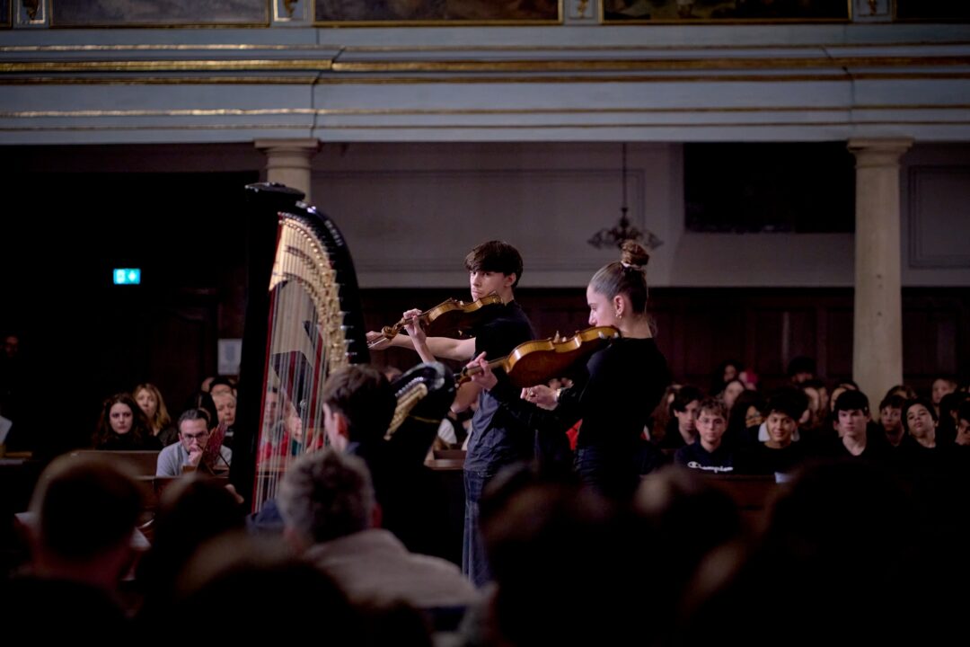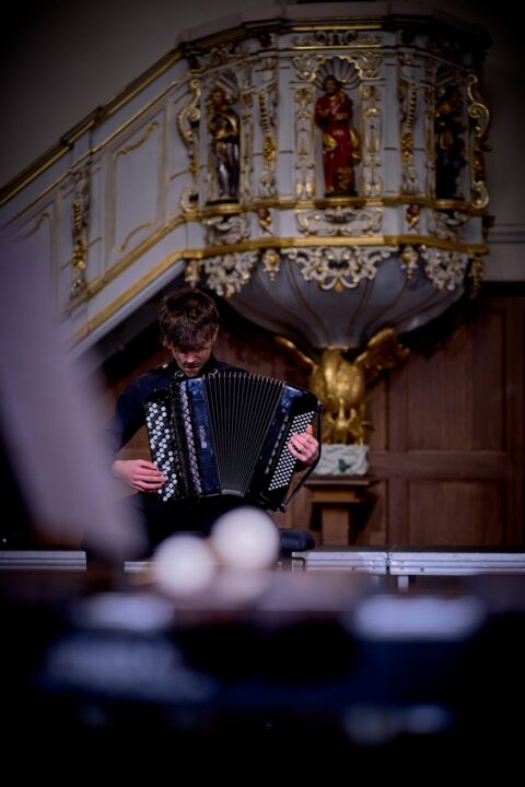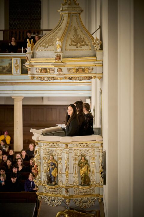 La configuration de l’église Sainte Aurélie permettait de belles possibilités de spatialisation, des occasions de jouer avec l’acoustique, que n’ont pas manqué d’exploiter les deux enseignants, Marie-Annick Guillemin et François Lecourt, pour surprendre les spectateurs.